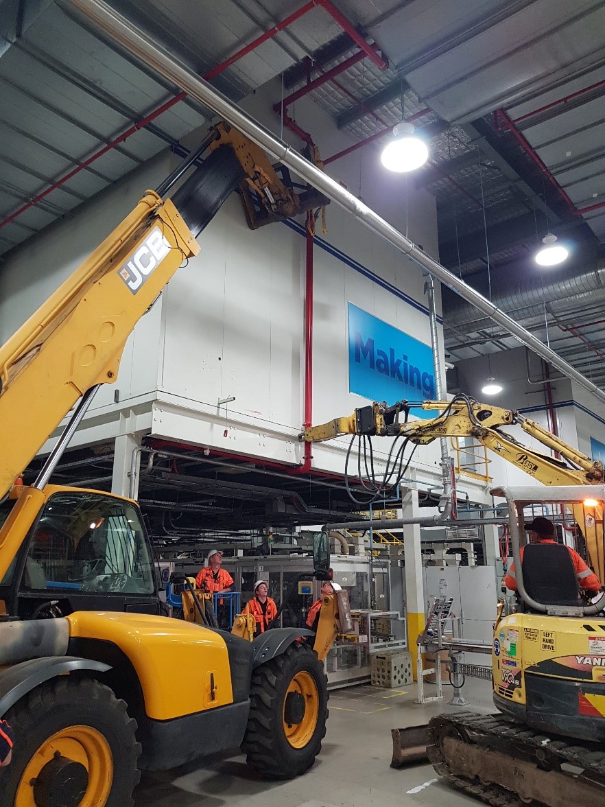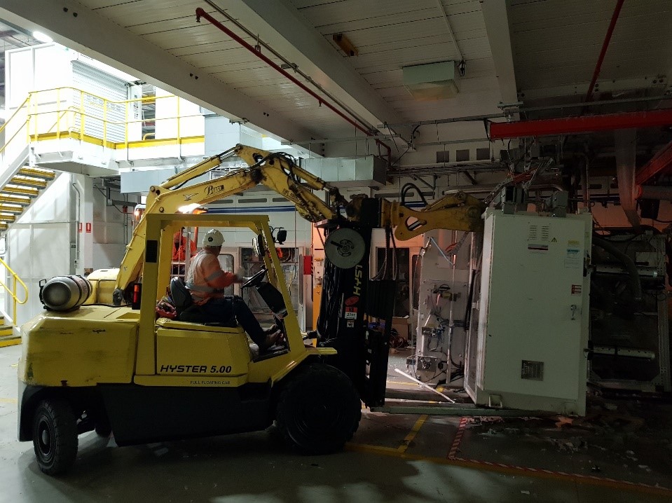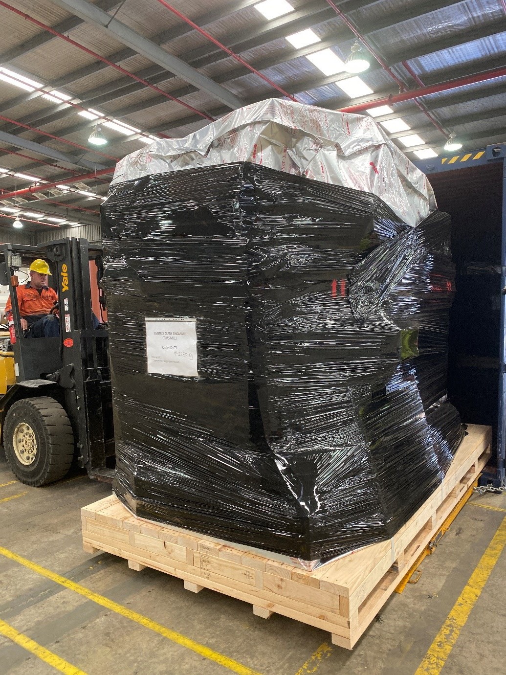 Kimberley Clark AustraliaBeasy were engaged by Kimberley-Clark Australia to act as Principal contractor to salvage large manufacturing equipment before shrink wrapping and exporting to Malaysia, India, Singapore, South Korea and the US. Machinery was methodologically fixed onto customized reinforced bases then covered with custom made Barrier Foil bags. These foil bags are made of advanced material that prevent any types of erosion and transmission of odours. Beasy also provided other on-site logistics management including container storage and weight control to ensure the machines were shipped in an economical, safe and efficient manner.